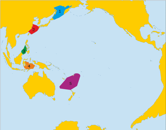 Укажи, якою цифрою на карті позначено море Фіджі