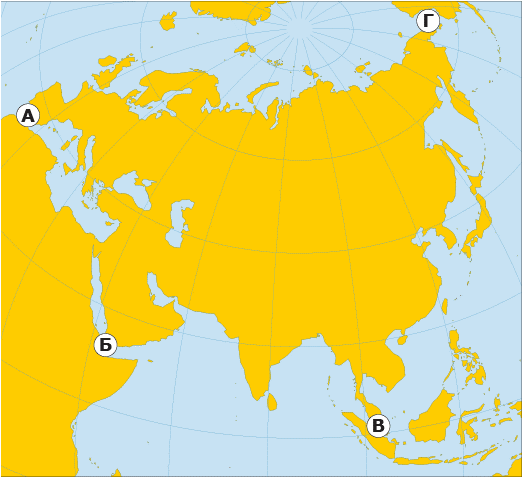 Розмісти крайні точки Євразії за годинниковою стрілкою, починаючи з північної