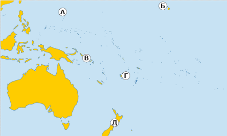 Укажи, якою літерою на карті позначені острови Нова Зеландія