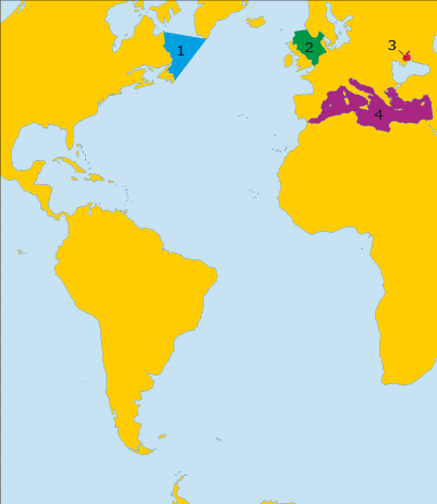 Увідповідни море Атлантичного океану із цифрою, якою воно позначене на карті