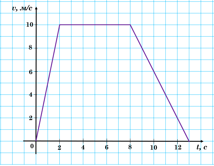 На рисунку зображено графік залежності швидкості тіла від часу. Користуючись графіком, укажи, якою була швидкість тіла через 1 с після початку руху