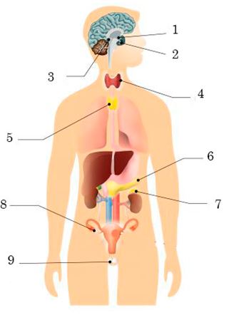 Визнач назву гормону, який продукує зазначена залоза внутрішньої секреції