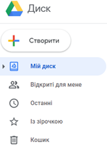 3. На малюнку зображено інтерфейс Google Диска. За допомогою якої команди
