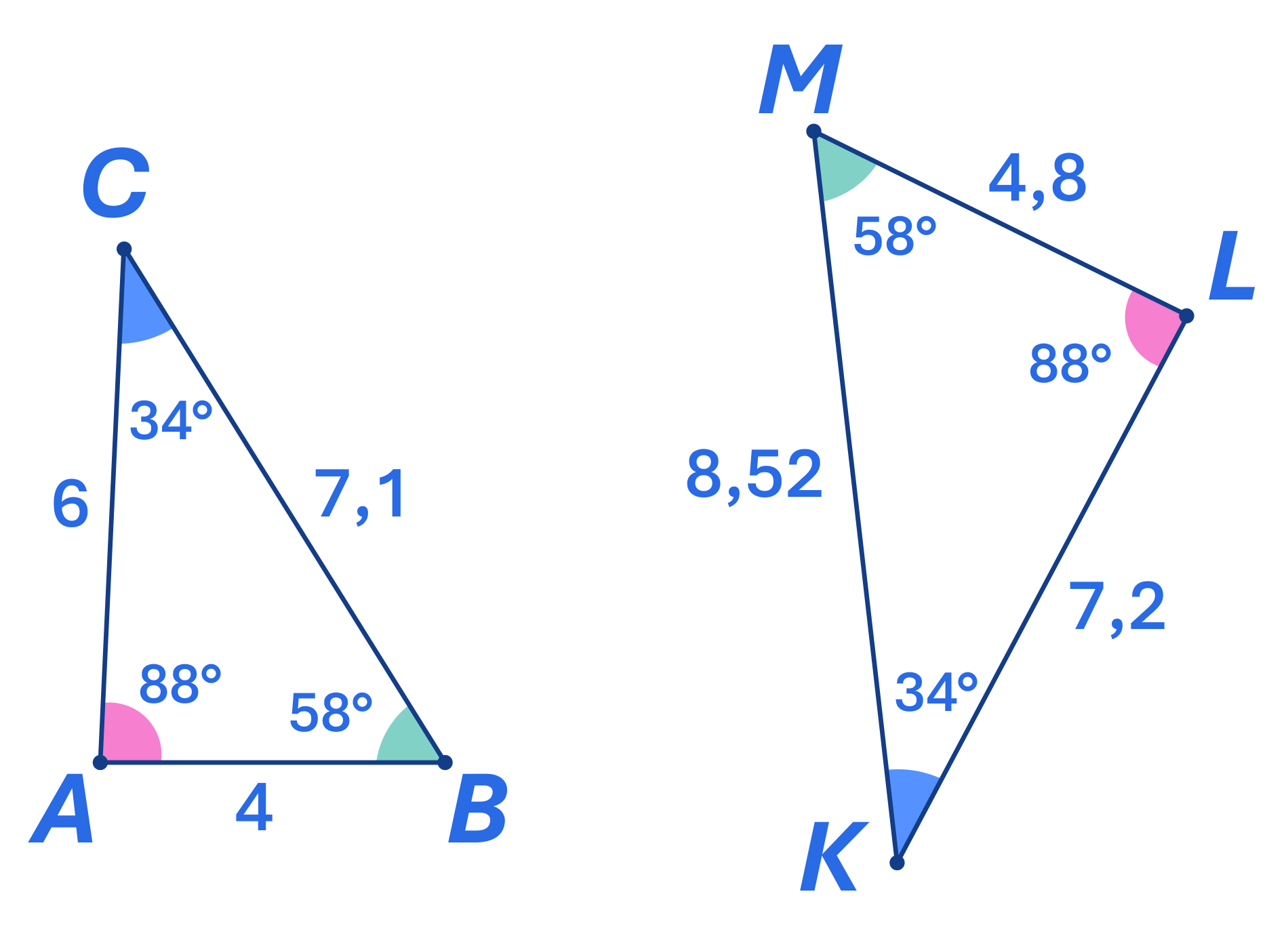 Укажи правильний запис подібності зображених на малюнку трикутників