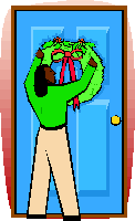 Es regnet. Ein Mann kommt ins Café herein. Er _____ den Regenschirm an die Wand.
