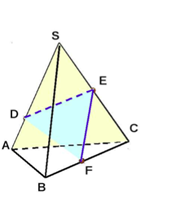 Скориставшись рисунком, укажіть дві площини, які містять пряму DE