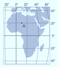 Визначте географічну широту точки А (у градусах) й укажіть правильну відповідь