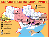 Розгляньте карту поширення рудних корисних копалин на території України. Укажіть, до якої тектонічної структури належить більшість покладів руд