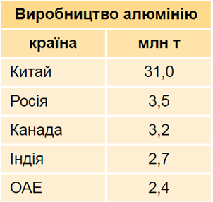 Установіть відповідність між країнами-лідерами за виробництвом алюмінію і місцями, які вони посідають
