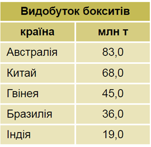 Розгляньте таблицю країн-лідерів за сегментами глобального ланцюга доданої вартості в алюмінієвій промисловості. Установіть відповідність між країнами-лідерами за видобутком бокситів і місцями, які вони посідають