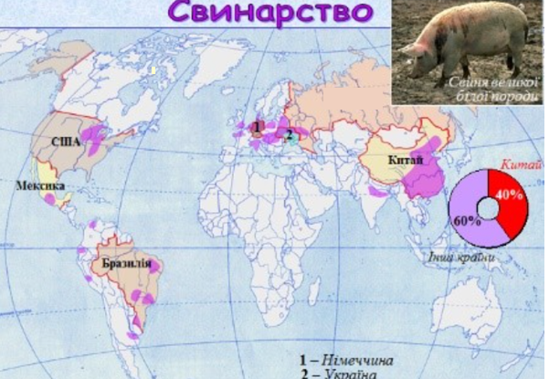 Світовим лідером за показниками розвитку свинарства є Китай.