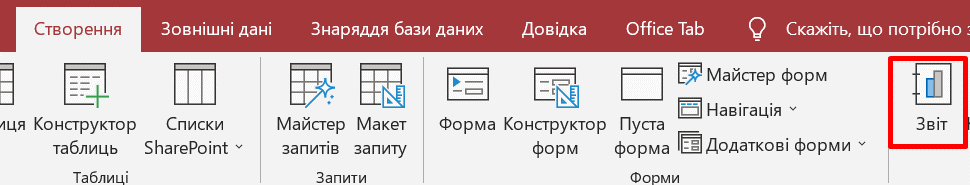 2. Створіть звіт на базі таблиці «Оцінки» за допомогою засобу «Звіт». Створити → Звіт (рис. 1).