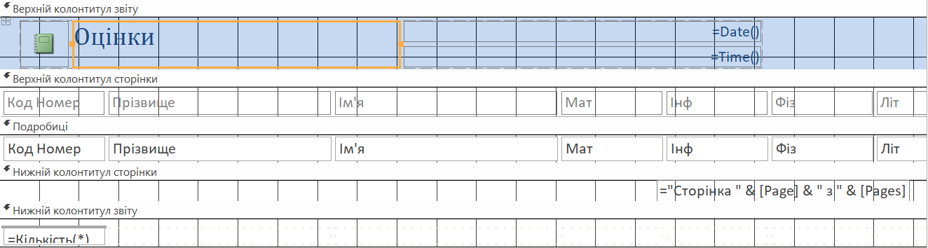 4. Перегляньте структуру звіту. Перейдіть у режим конструктора (рис. 2).