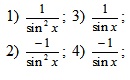 Похідною функції y=ctgx є: