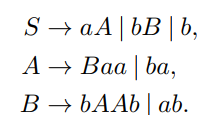 Neka je zadana sljedeća konteksto neovisna gramatika G = ({S, A, B, C}, {a, b, c}, P, S). Produkcijska pravila P su definisana na sljedeći način: