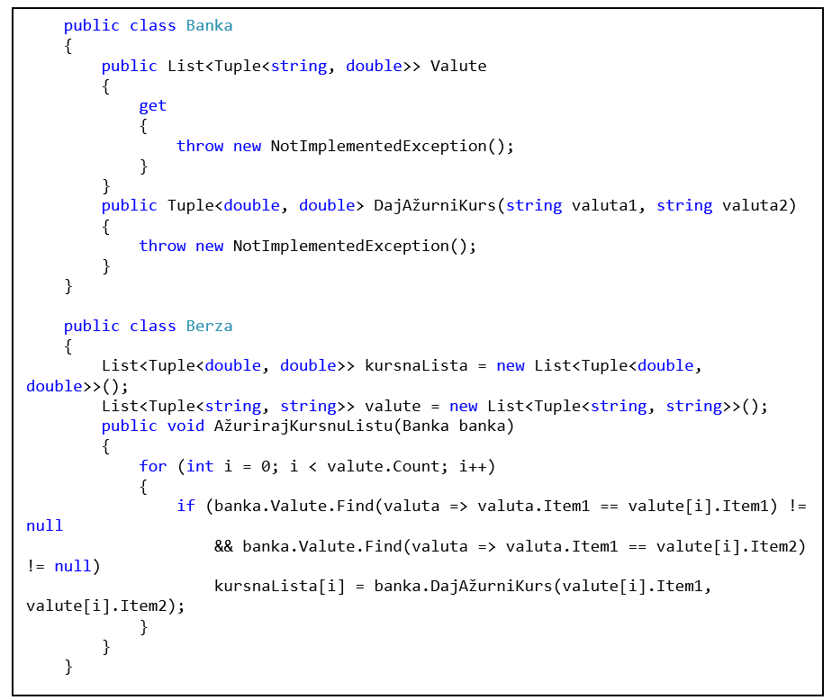 NECE BITI ZAMJENSKI OBJEKTI-U programskom kodu ispod koristi se klasa koja još uvijek nije implementirana. Koji od predloženih zamjenskih objekata mogu uspješno imitirati tražene funkcionalnosti nedostajućeg objekta: