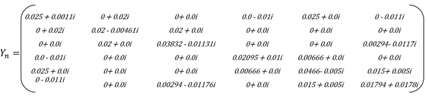 Nakon analize električne mreže sa 7 čvorova i 11 grana, korištenjem metode napona čvorova (čvor 4 referentni čvor) dobivena je matrica admitansi čvorova: