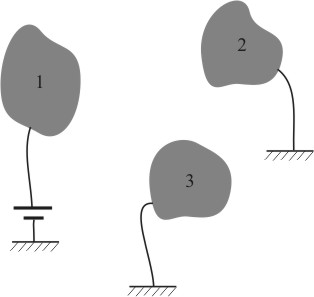En la figura se representan de forma cualitativa las líneas de campo correspondientes a un sistema de tres conductores en equilibrio electrostático. A partir de la figura indique que relación de los valores de los potenciales y de las cargas de cada uno de los conductores, es correcta.
