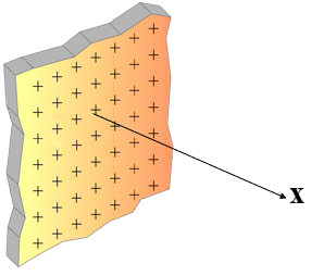 Considerar una plancha delgada, infinita de carga distribuida en volumen a través de una distribución no uniforme que viene dada por la expresión: y espesor , ( ). Para los valores de b=6803,0 y d=0,42, medidos en el S.I de unidades, determinar la intensidad del campo electrostático creado por la plancha en puntos a la izquierda de la misma que distan x=21,4 m. Expresar la medida en Tera unidades del Sistema Internacional con cuatro decimales.