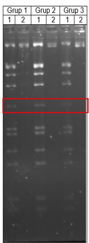 La imatge següent mostra una electroforesi dels fragments generats per la digestió del DNA del bacteriòfag Lambda i del plasmidi pUC18 amb els enzims de restricció EcoRI i HindIII, barrejats (mostres 1), i dels mateixos DNAs desprès de unir-los amb DNA lligasa (mostres 2).