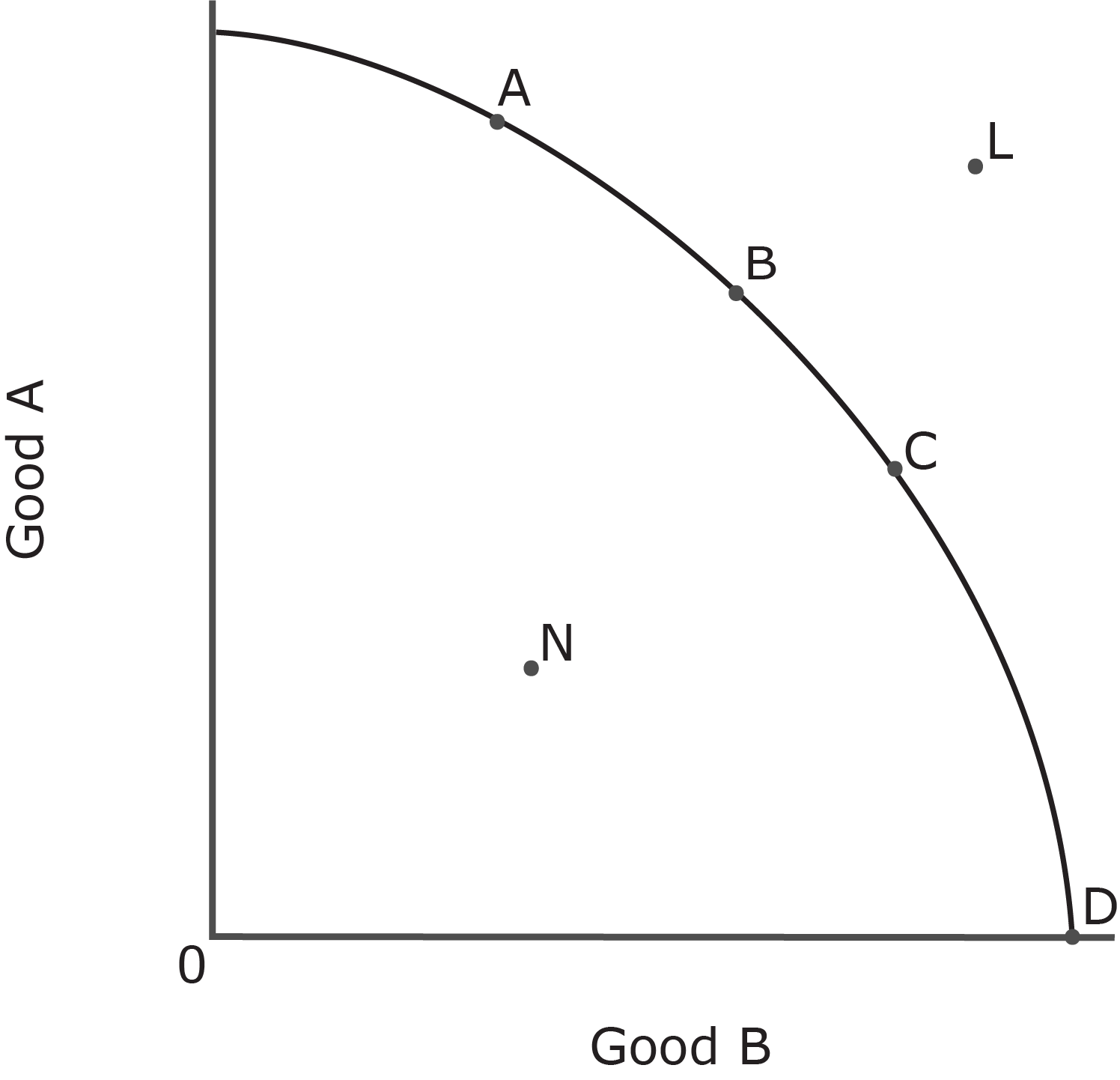 The above table shows production points on Sweet-Tooth Land's production possibilities curve. Which of the following statements is TRUE?