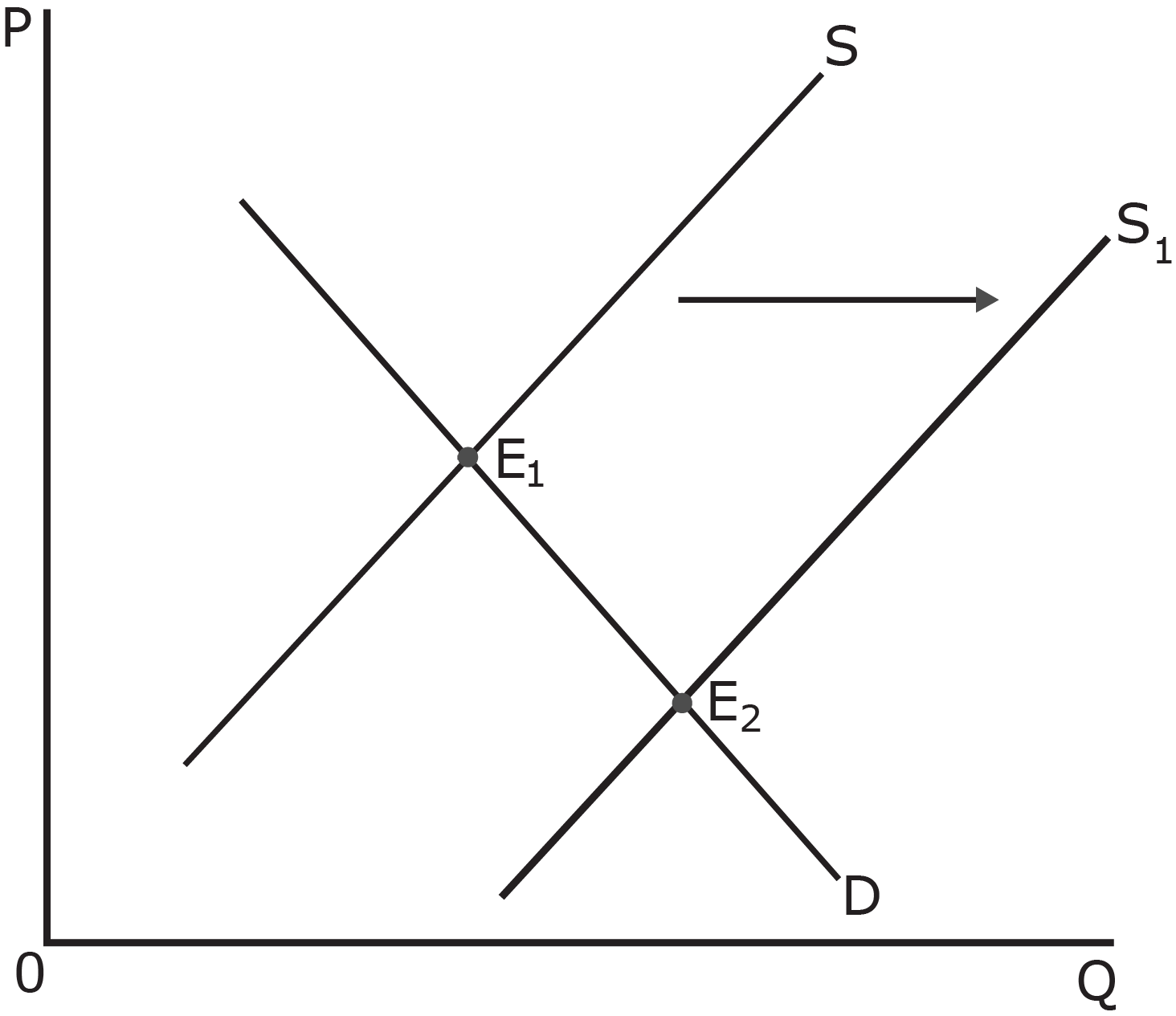 What caused the equilibrium to change from E1 to E2 in the graph below?
