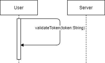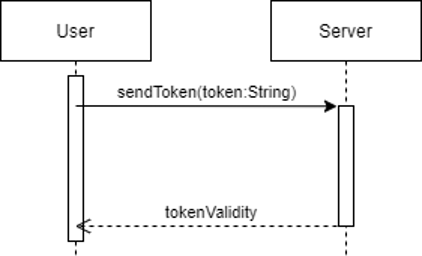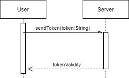 Кој од следниве секвенцни дијаграми го опишува следното сценарио: „Корисникот го праќа токенот до серверот. Серверот го процесира барањето на корисникот и враќа одговор за валидноста на токенот. Корисникот во меѓувреме може да користи други опции од апликацијата додека го чека одговорот.“ ?