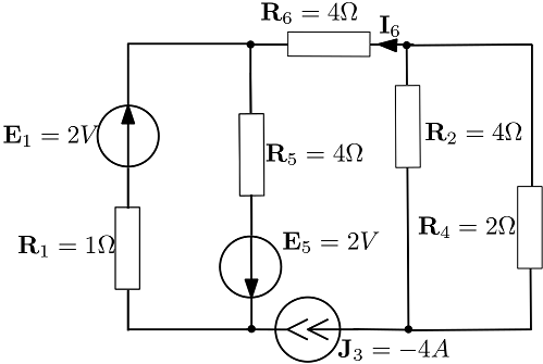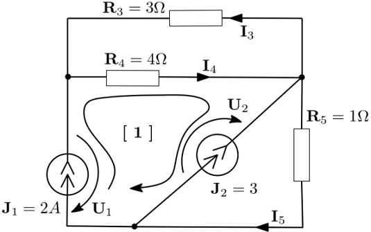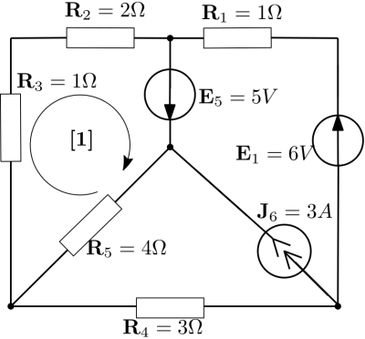 Rezolvarea circuitului din figura cu metoda Kirchhoff este echivalentă cu rezolvarea unui sistem algebric liniar  unde .