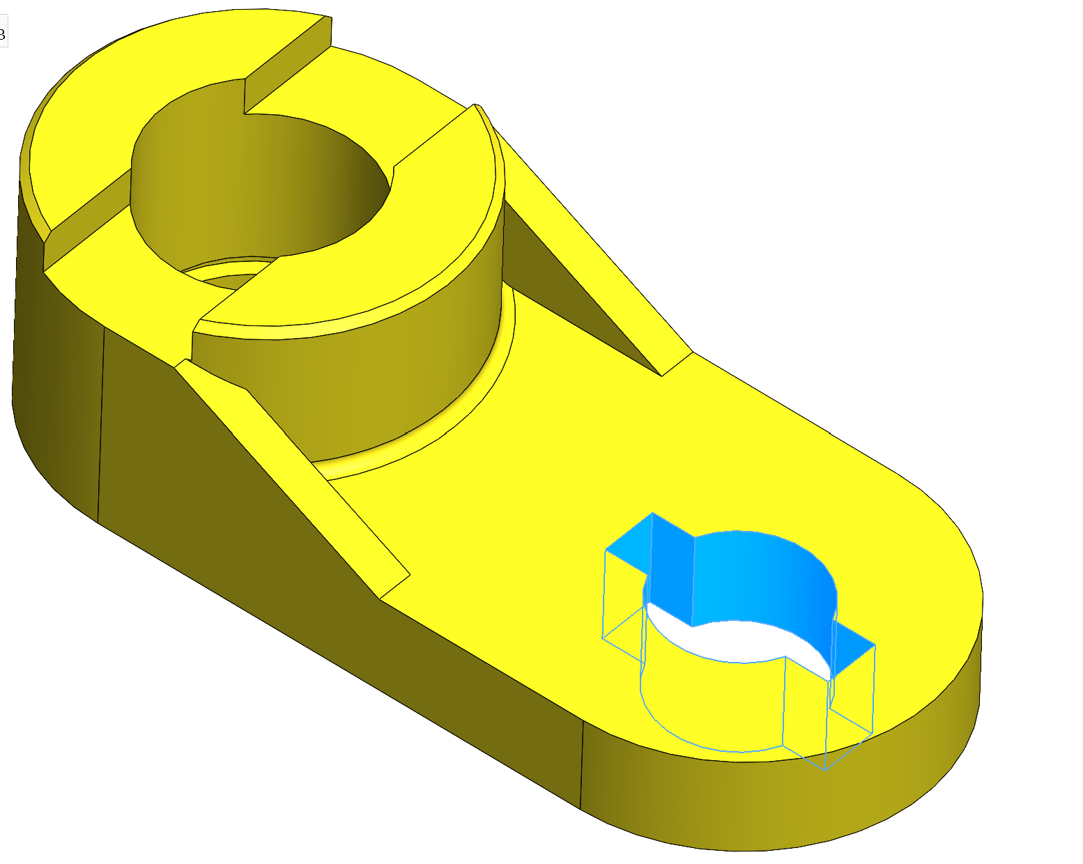 Elementele din detaliul B, prezentat în figura de mai jos, se pot realiza cu comanda Lofted Cut.