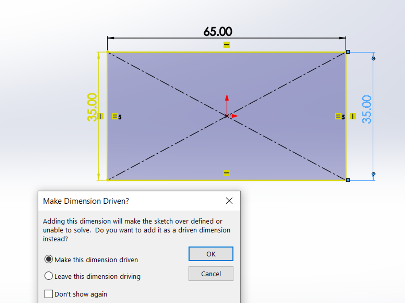 In timpul dimensionarii conturului din imaginea de mai jos, ce determină ca toate dimensiunile sa devina galbene si sa apara un mesaj de eroare?