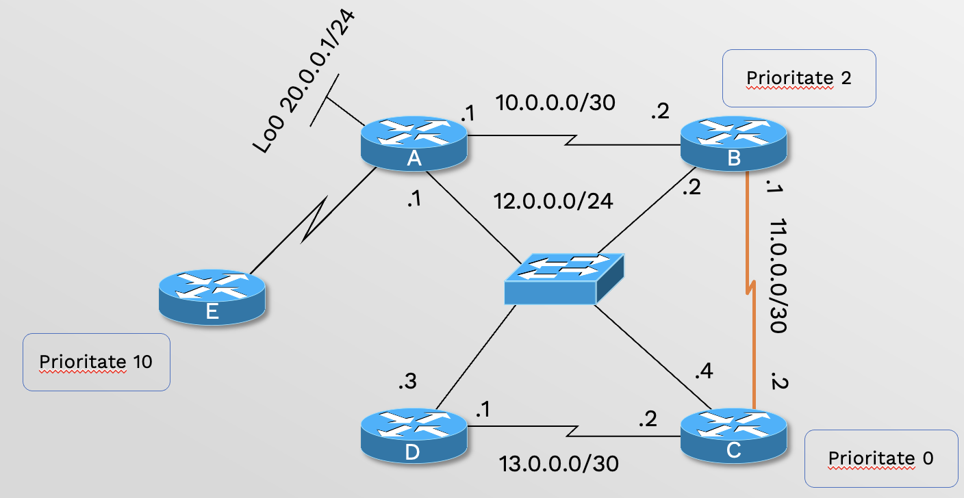 Cine va deveni DR în următorul scenariu dacă toate routerele sunt configurate în OSPF area 0?