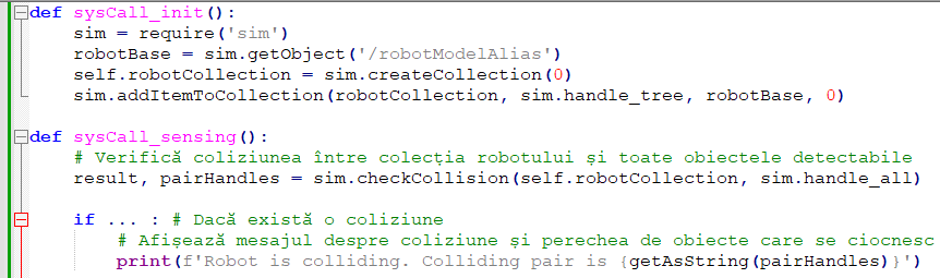 d. nu se poate verifica existența unei coliziuni deoarece în cazul în care există o coliziune, execuția se întrerupe, iar codul nu ajunge la acel block "if"