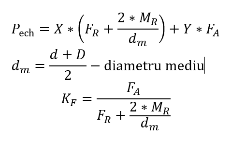 Pentru relatiile de calcul al fortelor echivalente de mai jos, (caracteristice rulmentilor cu sectiune ingusta), in corespondenta cu numarul relatiei indicat intre paranteze in fata acesteia, precizati: