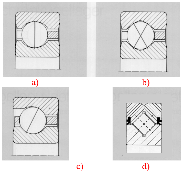 Cu referire la literele de sub fiecare figura, pentru categoriile de rulmenti cu sectiune ingusta de mai jos