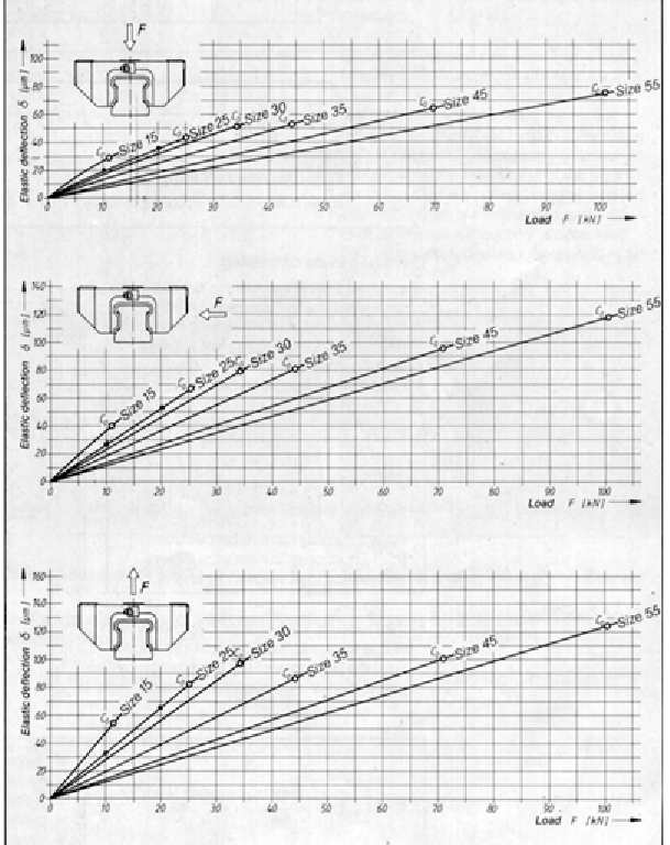 In figura de mai jos sunt prezentate trei familii de curbe de rigitate pentru ghidajele model STAR. Intre aceste familii de curbe sunt remarcabile diferente intre valorile maxime ale deformatiilor elastice inregistrate pentru fiecare familie de curbe.