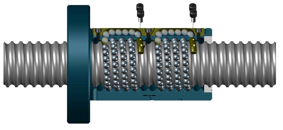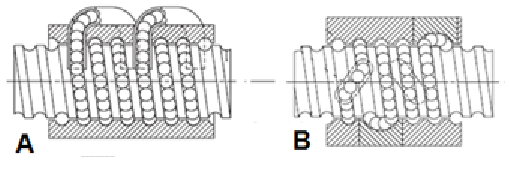 a. ce sistem de recirculare are sistemul surub piulita cu bile din figura?