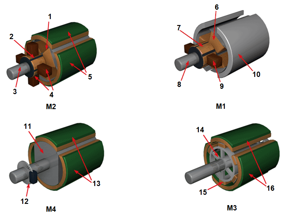 Pentru servomotoarele de c.c. fara perii din imaginile de mai jos, cu referire la numarul de ordine din fata fiecarei figuri, precizati:
