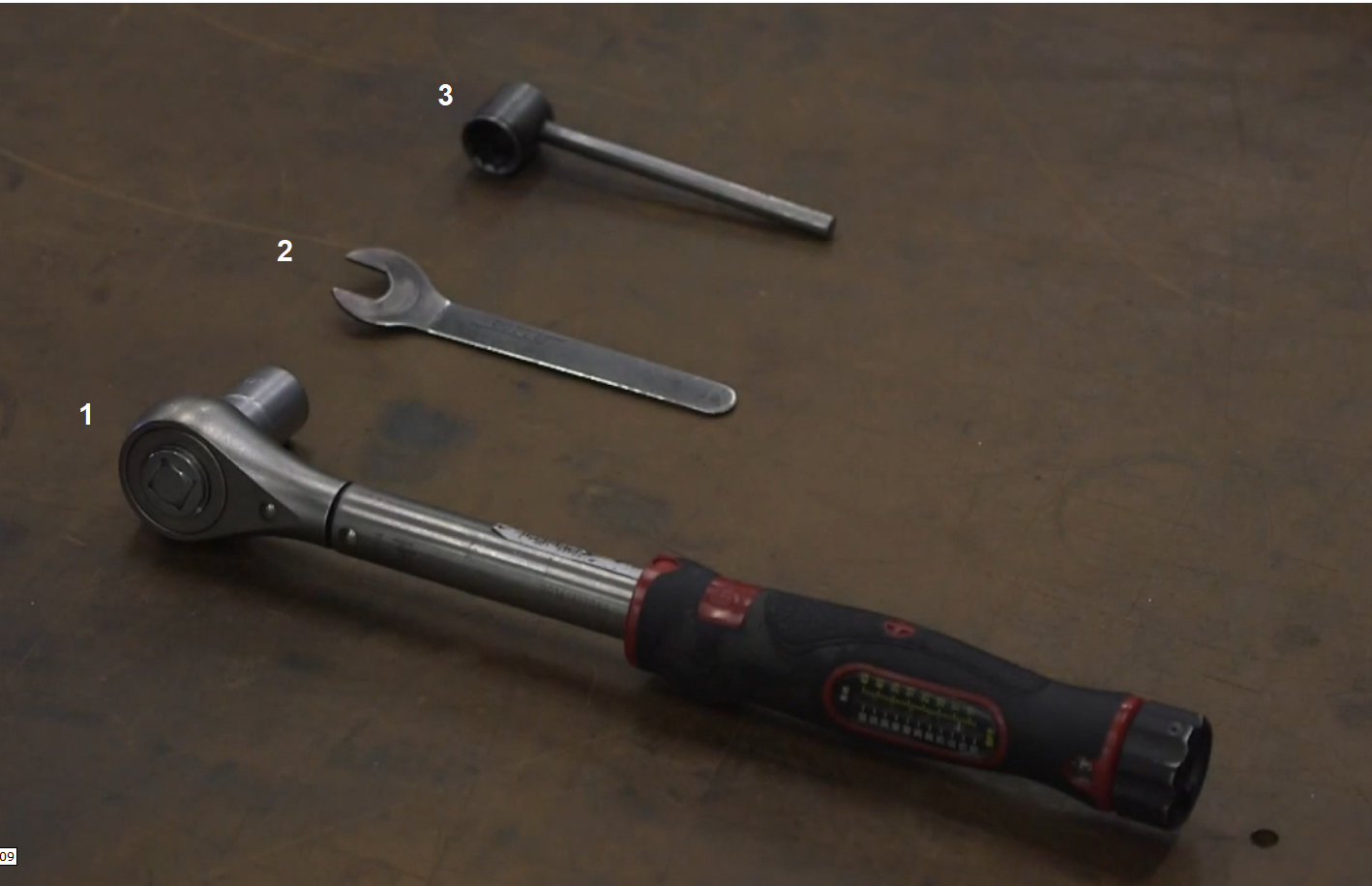 b. In figura 2 sunt prezentate trei instrumente de lucru: o cheie dinamometrica (1), o cheie fixa (2) si o cheie tubulara (3) iar in fig 3 modul de utilizare a doua dintre ele. Care dintre cele trei instrumente este folosit pentru: