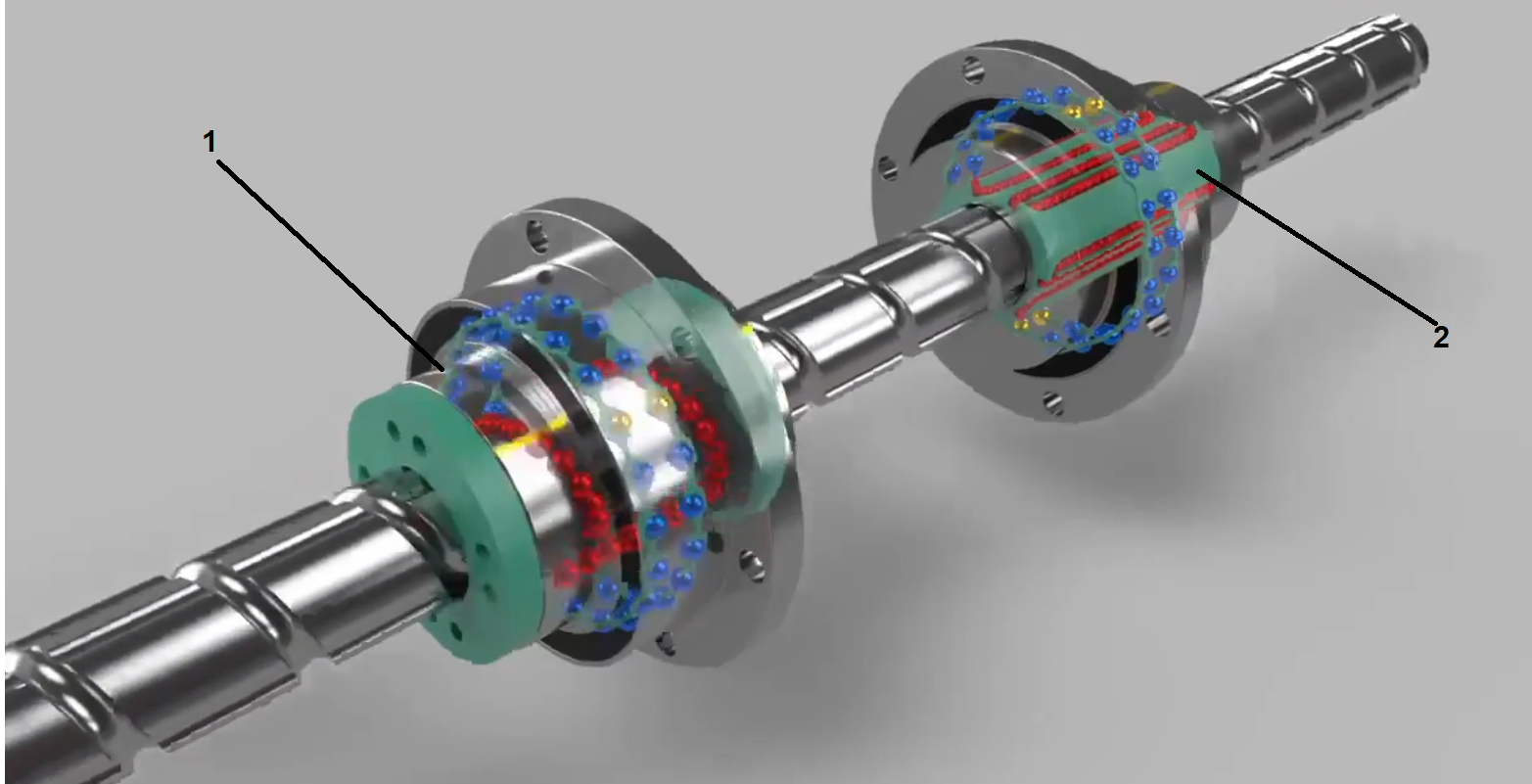 b. pentru sistemul prezentat in fig 2 ce tip de miscare se realizeaza de catre arborele comun al celor doua subansambluri daca se roteste elementul 1 iar elementul 2 este fix