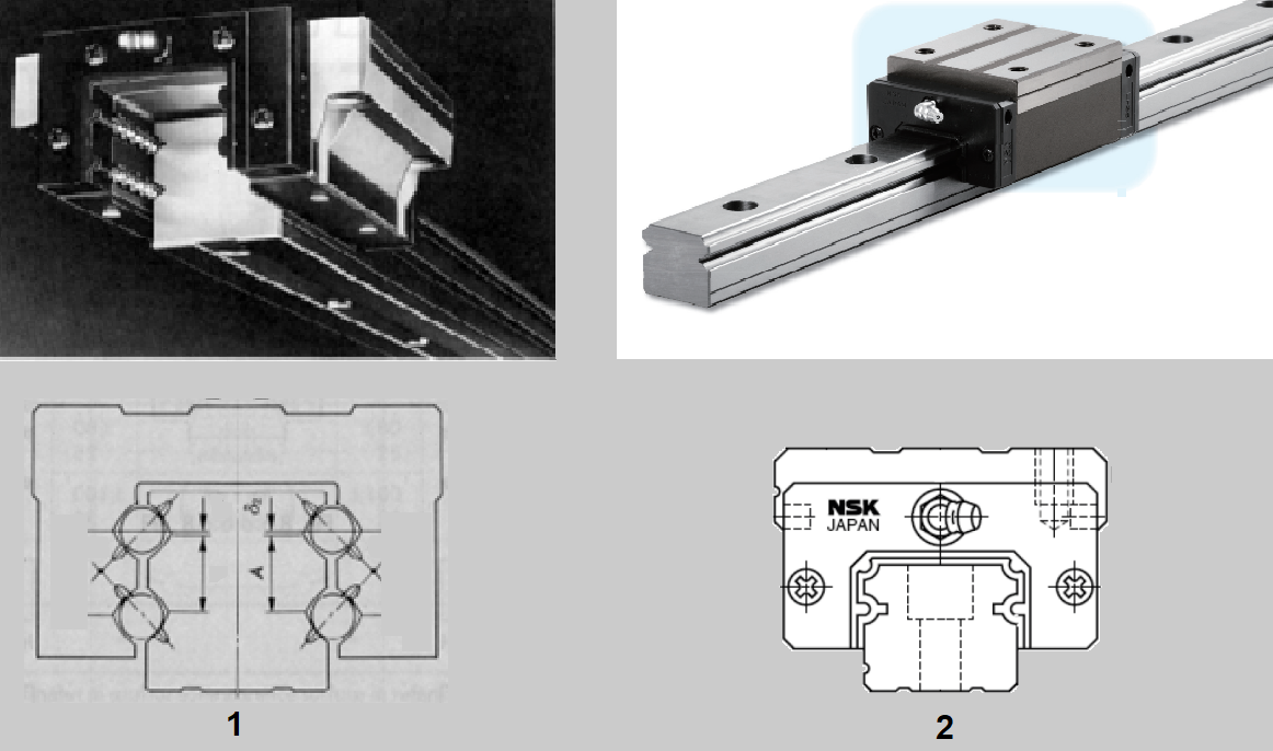 Pentru ghidajele model NSK din figurile de mai jos, indicati: