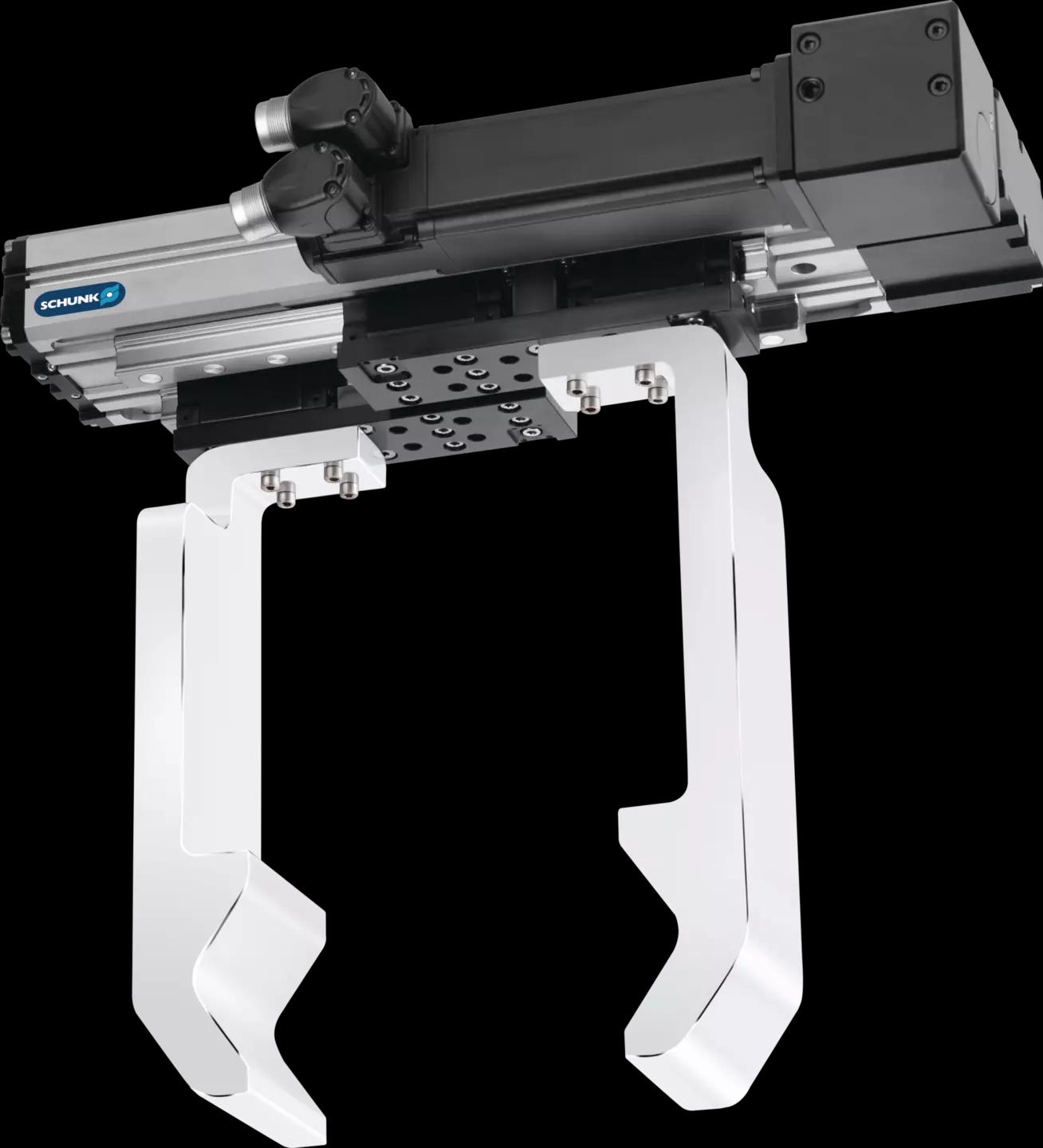 e4 este echipat cu un efector cu 2 bacuri in miscare de translatie