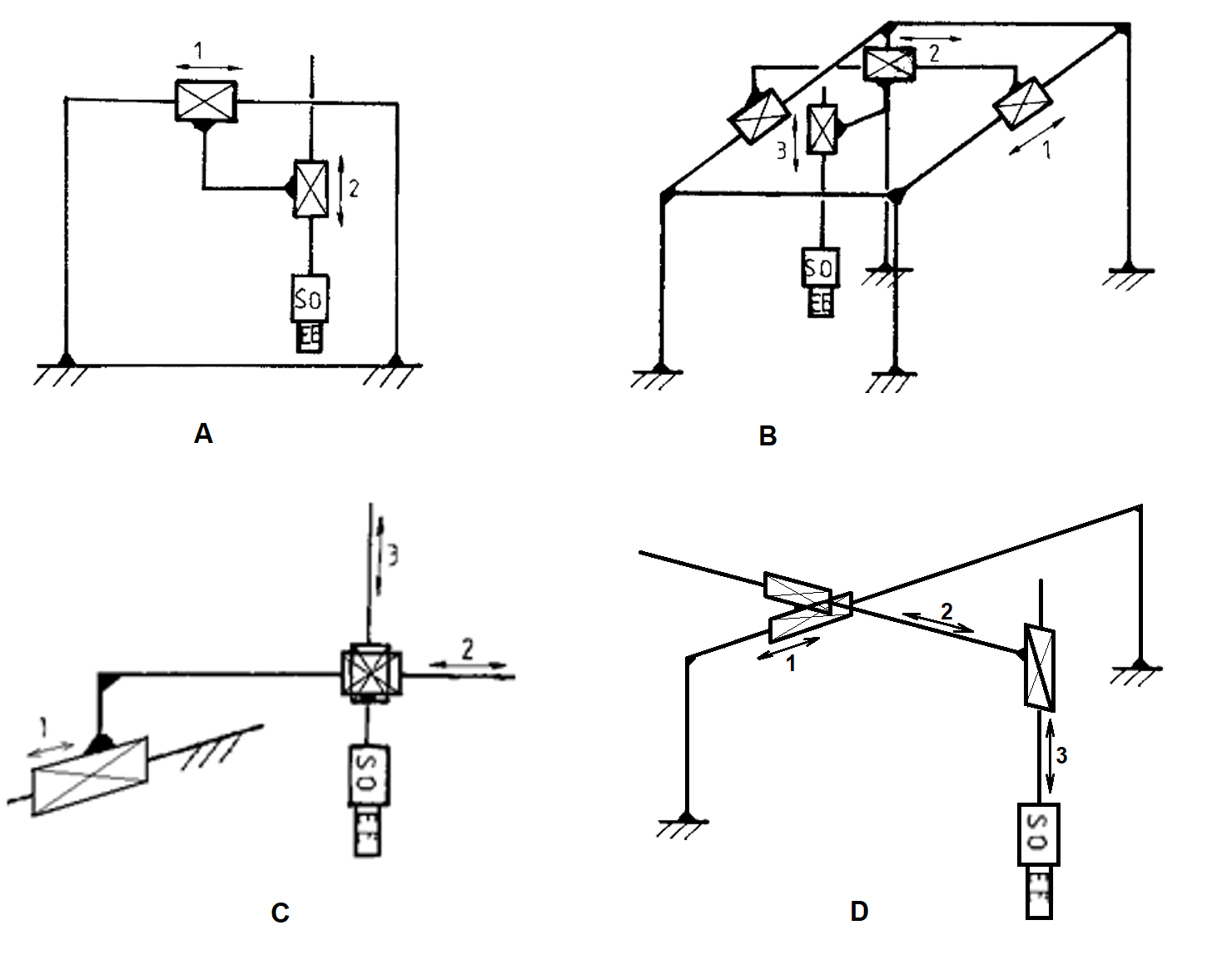 e. Cate dintre sistemele tehnice prezentate in figurile de mai jos au un in una dintre ACN un modul suport (fara actionare proprie) utilizat doar pentru cresterea capacitatii portante a elementului mobil actionat