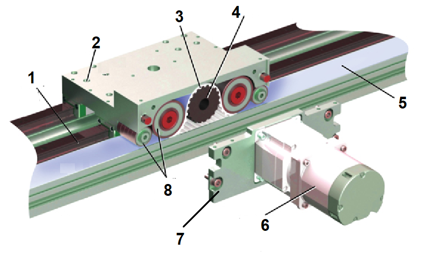 j: mecanism cu curea dintata in circuit inchis