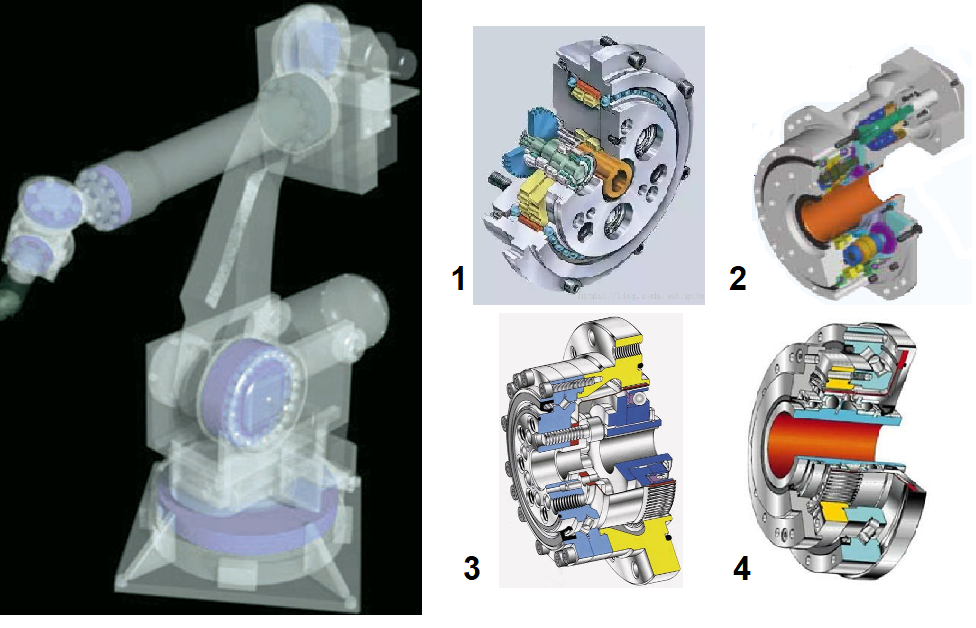 Pentru RI cu arhitectura de tip brat articulat, considerat intr-o varianta de conceptie ideala, precizati care dintre categoriile de reductoare se pot integra optimal in fiecare din cele 6 axe comandate numeric.