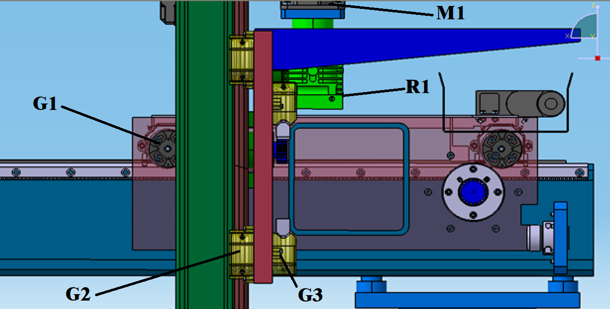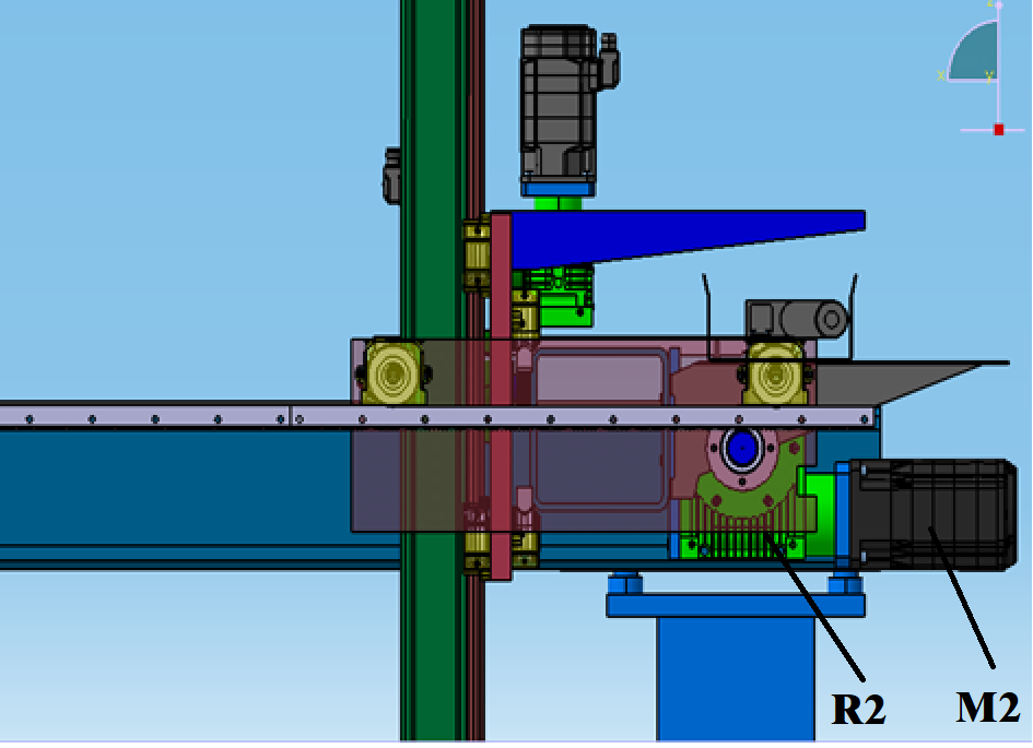 a Care dintre motoarele verde / portocaliu trebuie actionate pentru a obtine miscarea de translatie pe verticala a efectorului (corespunzatoare axei 2 CN a RI):