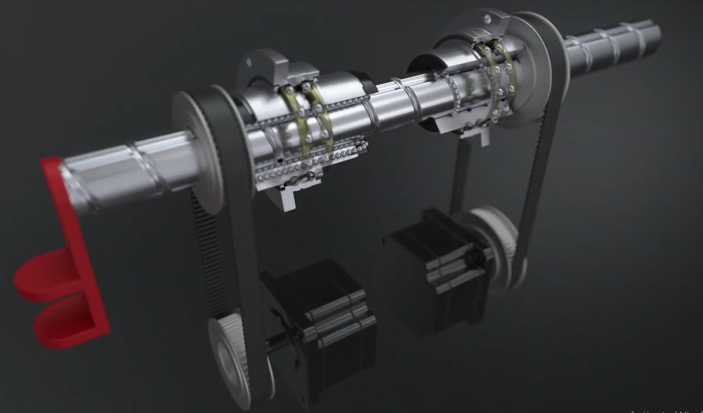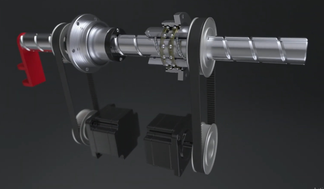 In figurile de mai jos este prezentata solutia tehnica de realizare a axelor 3 si 4 din structura RI de tip SCARA de conceptie moderna.