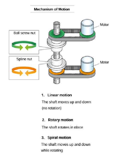 c Care dintre motoarele verde / portocaliu trebuie actionate pentru a obtine o miscare elicoidala de translatie pe verticala + simultan rotatie a efectorului: