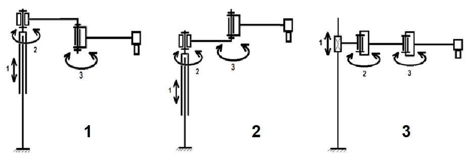 1. dintre schemele cinematice prezentate in figurile numerotate a, b, c, d, e, pentru RI integrat in aplicatia din fig 1, selectati care este schema structurala corespunzatoare variantei constructive de RI respective