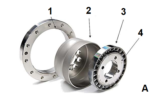 c. care sunt denumirile corecte ale elementelor componente ale reductorului din fig. A numerotate cu cifre de la 1 la 4cA: 1=element elastic