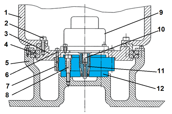 a2 motorul de actionare 9 este amplasat pe partea mobila a cuplei de rotatie